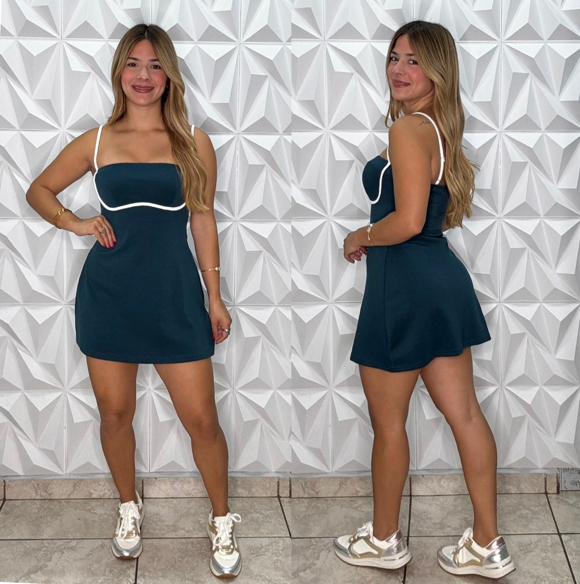 La tela es algodón y poliéster. Tela Estira. Tiene corto integrado. Manguillos ajustables. Corre al size. Usado talla Small. Modelo mide 5 1”