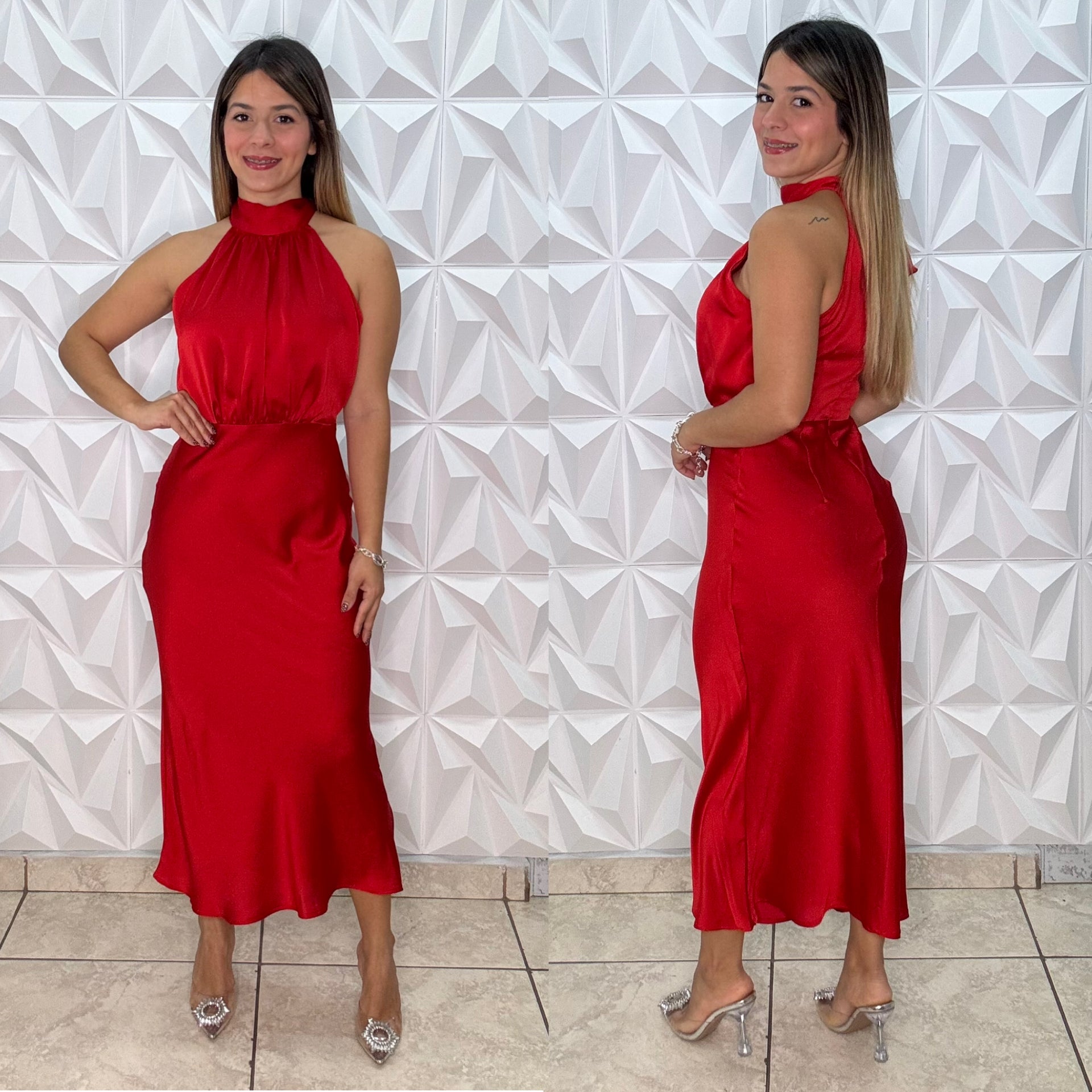 Vestido de satén rojo Keren