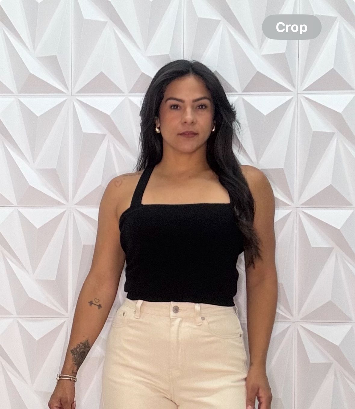La tela es elástica, se ata en la espalda a tu medida. Se ajusta a la talla. Usando talla pequeña.